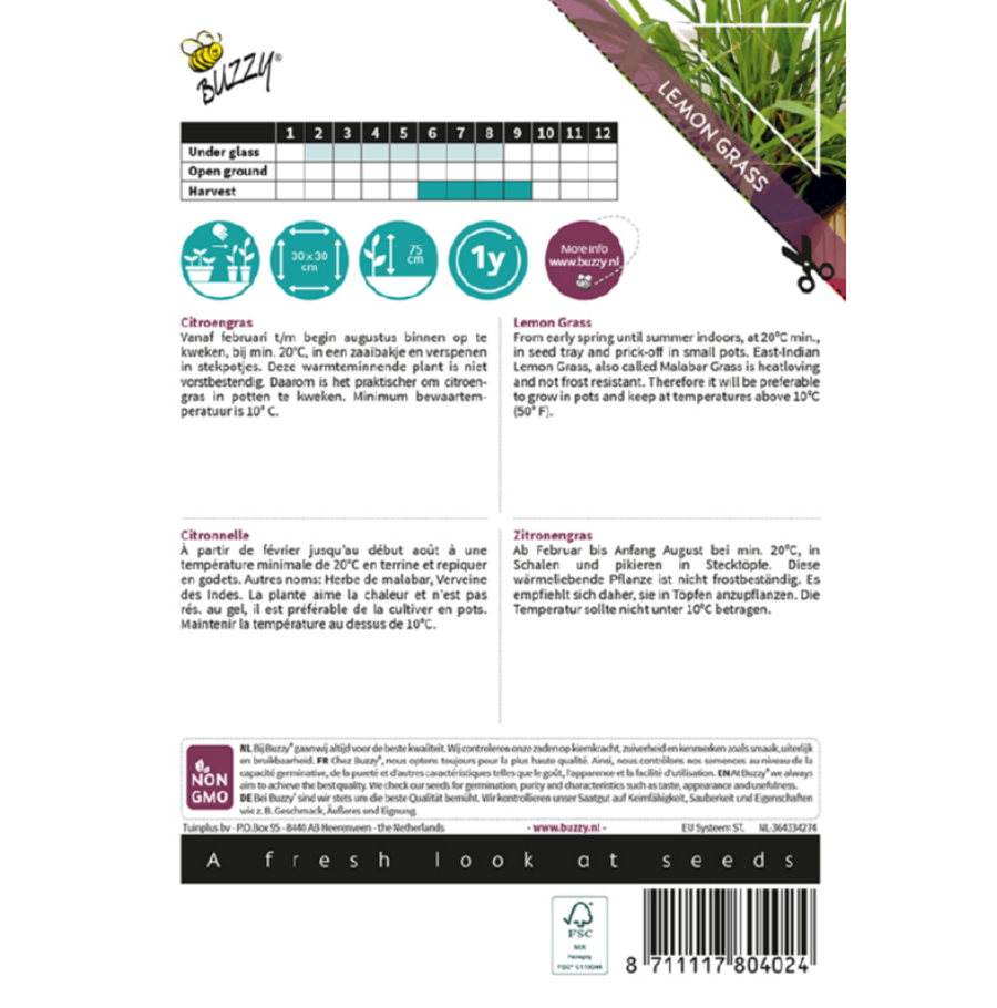 vorst bestendig. Daarom is het praktischer om citroengras in potten te kweken. Minimum bewaar temperatuur is 10°C.