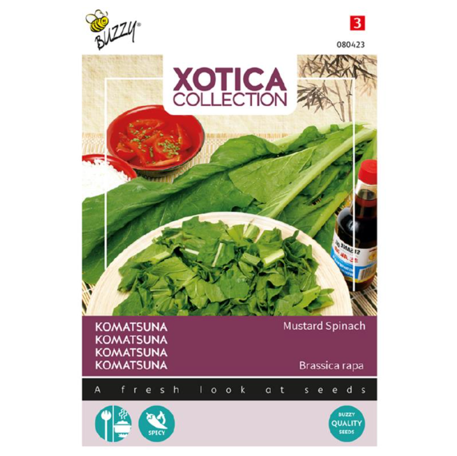 Komatsuna of Mosterdspinazie is een snelgroeiende losse bladkool, met een frisse mosterdsmaak en rijk aan calcium.